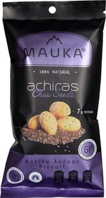 Snack típico colombiano MAUKA elaborado con ingredientes 100% naturales y nutritivos. Es un producto libre de gluten, fortificado con semillas de chía, alto en Proteína, alto en Fibra con un empaque ecológico y ambientalmente sostenible.