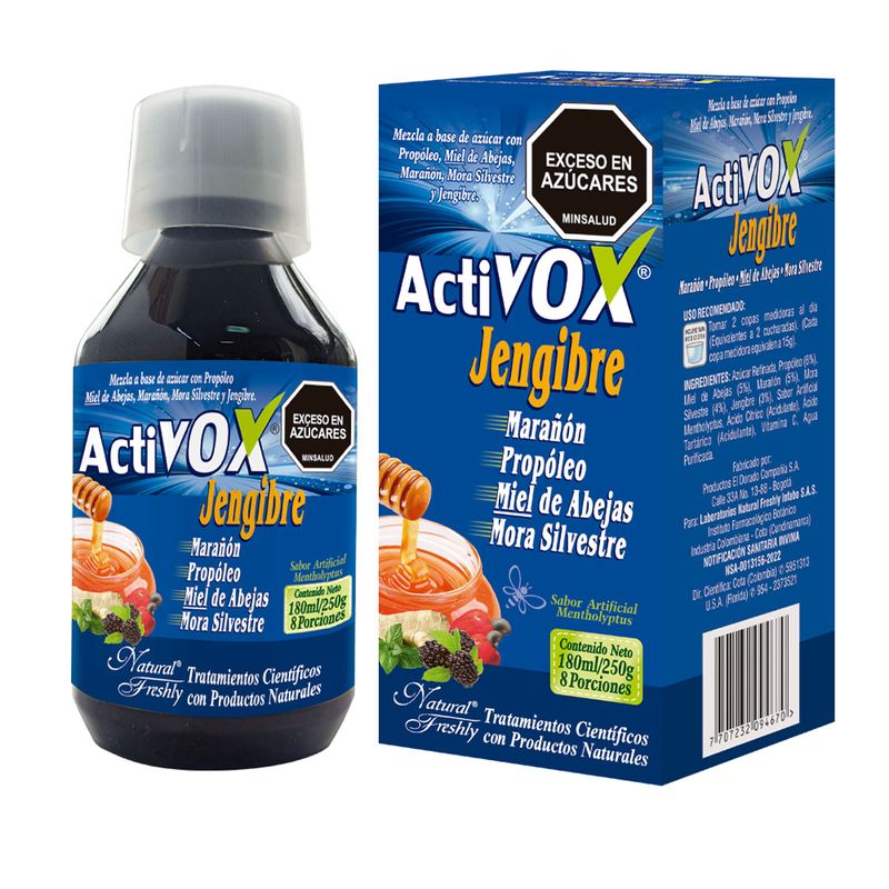 Jenjibre, marañon, propoleo, miel de abejas. Mora silvestre, vitamina c,