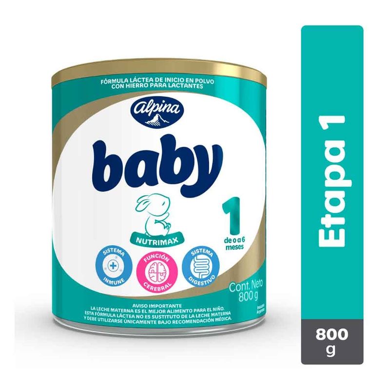 Alpina Baby Nutrimax Etapa 1 es la elección perfecta para el crecimiento saludable de tu bebé. Fabricada por Alpina, esta fórmula ha sido desarrollada pensando en las necesidades nutricionales específicas de los bebés de 0 a 6 meses. Proporciona los nutrientes esenciales para fortalecer su sistema inmunológico, favorecer el desarrollo cognitivo y asegurar un crecimiento adecuado en esta etapa crucial de su vida.