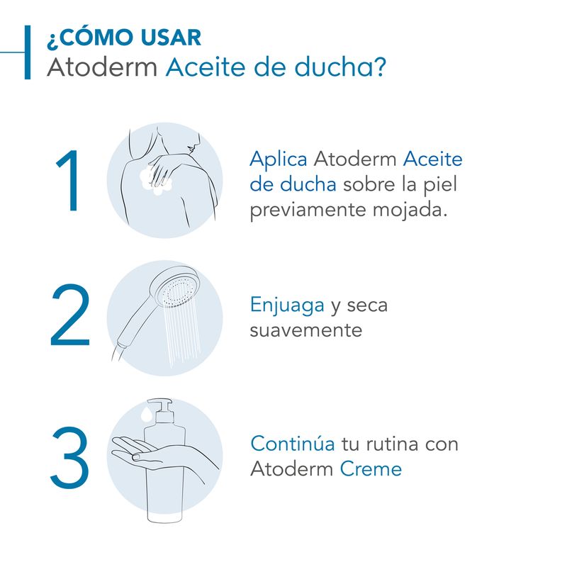 Aceite de ducha para pieles muy secas. Uso diario.