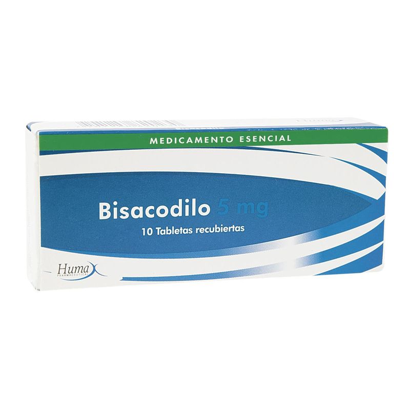 Bisacodilo 5mg Caja x 10Tabletas HxCaracterísticas y propiedades:Se usa a corto plazo para tratar el estreñimiento. También se usa para evacuar el intestino antes de una cirugía y de determinados procedimientos médicos.Modo de uso, posología o indicacionesLaxanteComposición, ingredientes o materiales:BisacodiloContraindicaciones, advertencias y Precauciones:Hipersensibilidad al medicamento. No usar si existen síntomas de apendicitis, hemorragia rectal no diagnosticada, insuficiencia cardiaco congestiva o hipertensión, deshidratación severa. En niños menores de 6 años no se recomienda el bisacodilo. El uso prolongado acentúa la pereza intestinal y puede ocasionar pérdida de potasio y otros electrolitos. Primer trimestre de embarazo. Precauciones: el consumo de leche y antiácidos debe hacerse al menos con una hora de diferencia a la toma del bisacodilo. No masticar. Ingerir con líquido suficiente.Marca comercial del producto:Bisacodilo 5MgMedidas:3.8 x 8.9 x 6.5 cm