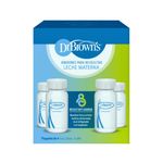 Cada biberón de recolección de leche materna está claramente marcado para medir el volumen de leche recolectada y contiene hasta 4 oz/120 ml de leche materna. Bombea y guárdalo en el refrigerador para las próximas comidas o congélalo en el biberón para un uso futuro. Cuando llegue el momento de alimentar al bebé, simplemente agrega las piezas del biberón y la tetina Dr. Brown's (se venden por separado).