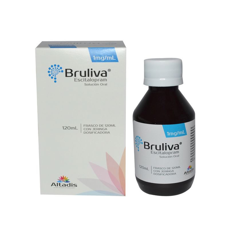 BRULIVA 1MG/ML SHN FCOX120ML+JER DOS AFSCaracterísticas y propiedades:Solución OralModo de uso, posología o indicacionesVía administración oralComposición, ingredientes o materiales:Cada 100 mL de Solución Oral contienen ESCITALOPRAM OXALATO 0,128g, EQUIVALENTE A