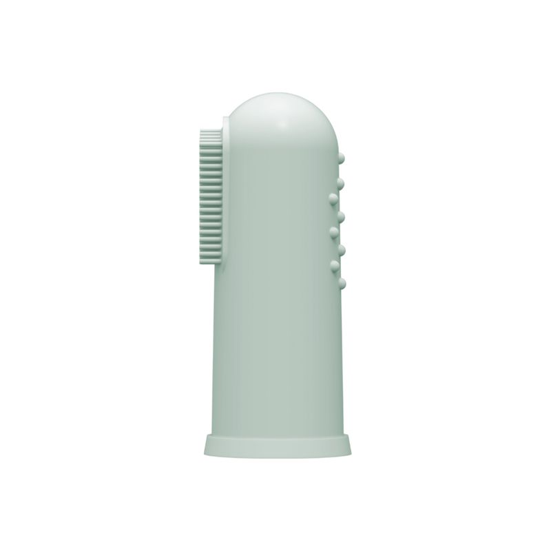 Lavar bien antes del primer uso con agua tibia y jabón suave. Colocar el cepillo en el dedo índice del adulto y frotar suavemente las encías, lengua y primeros dientes del bebé con movimientos circulares. Limpiar y enjuagar después de cada uso y dejar secar al aire.