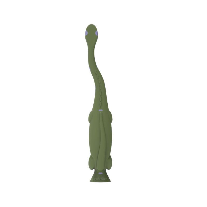 El cepillo de dientes tiene el tamaño adecuado para bocas en crecimiento, lo que ayuda a tu pequeño a desarrollar las habilidades que necesita para lograr un cepillado independiente. Las cerdas supersuaves limpian suavemente los dientes y las encías de los niños pequeños, mientras que la base con ventosa mantiene el cepillo de dientes en su lugar de forma segura en posición vertical. La forma y el material del cepillo de dientes de dinosaurio son ideales para ayudar a los pequeños dedos a mantener un buen agarre mientras los ayudas a cepillarse. Recuerda enjuagar el cepillo de dientes con agua tibia antes y después de cada uso. Para un uso óptimo, los dentistas recomiendan reemplazar el cepillo de dientes cada tres meses. Destinado a niños pequeños de 1 a 4 años.