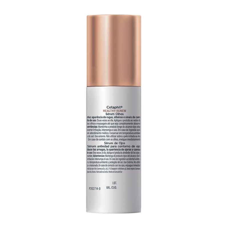 El Serúm Contorno de Ojos Cetaphil Healthy Renew con péptidos purificados al 2%,niacinamida, pantenol, extracto de arroz y flor de las nieves, adaptada a la delicada zona de los ojos para una zona más suave, brillante y rejuvenecida. Después de 2 semanas de uso esta clinicamente comprobado que disminuye las líneas finas y las arrugas de las patas de gallo, al tiempo que mejora la firmeza, la luminosidad, la homogeneidad y la textura, dejando que el área de los ojos se vea iluminada y se sienta calmada. Mejora las ojeras y la homogeneidad del contorno de ojos a partir de las 4 semanas.