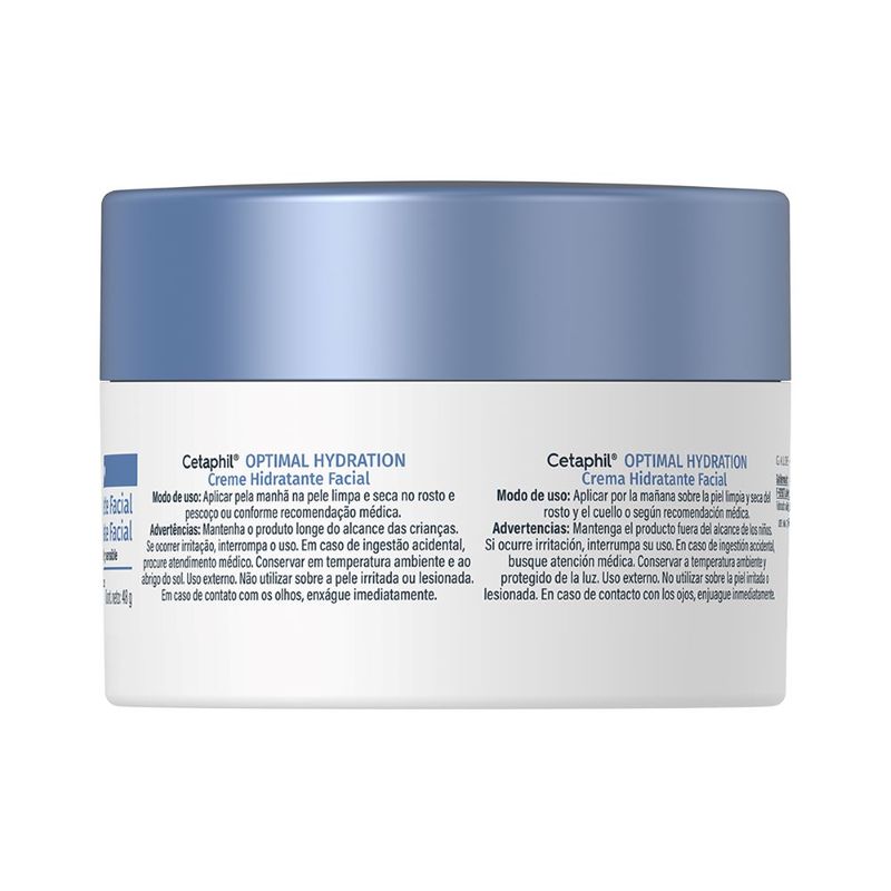 La Crema Hidratante Facial Día Cetaphil Optimal Hydration se compone de una textura ligera y no grasa reponiendo profundamente la hidratación de la piel durante 48 horas y ayuda a mejorar la calidad general de la piel. Formulado con ácido hialurónico para calmar inmediatamente y reponer profundamente la piel sensible seca y deshidratada.