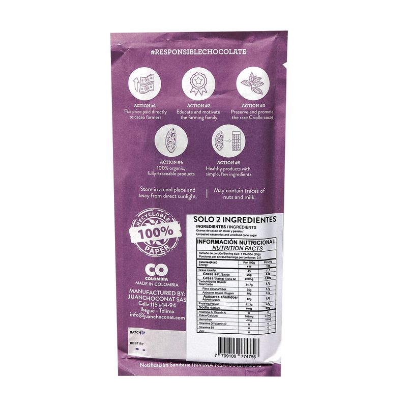 Chocolate Cacao Sin Tostar 85% Cacao Barra Por 65 Gramos