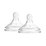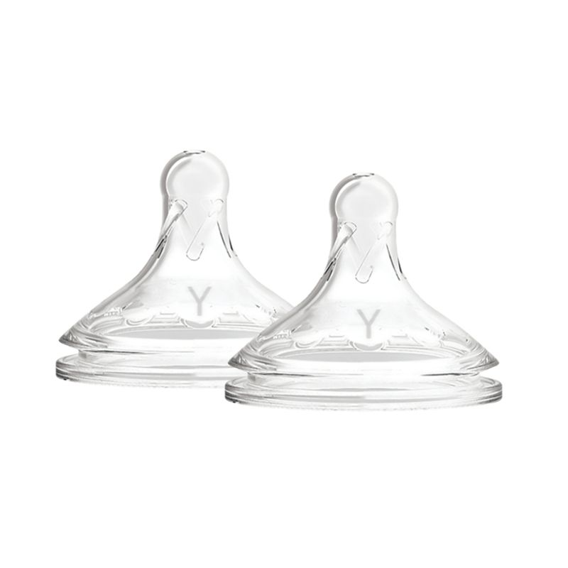 Dos chupos para tetero boca ancha Options+, ideal para la alimentación de bebés mayores a 9 meses por su corte en Y que permite la salida de liquidos más espesos como coladas, su flujo es mayor por lo tanto el bebé se alimentará sin presión negativa y a una velocidad ideal para su edad. Tetina más parecida al pecho materno para una alimentación más natural.