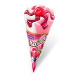 Helado de grasa vegetal sabores vainilla y frutos rojos en barquillo, con cobertura sabor