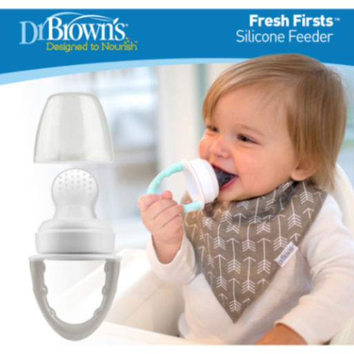 Dispensador de comida para los más pequeños que permite ofrecerles nuevos alimentos y sabores sin riesgo de atragantarse. Los pequeños orificios permiten que el bebé pueda alimentarse con suficiente energía y de forma segura.