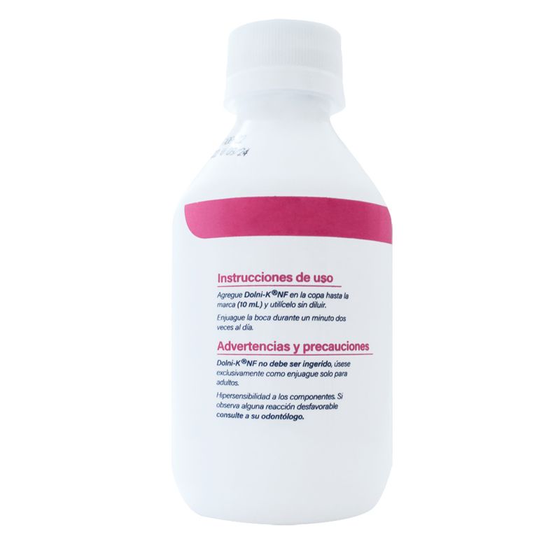 Beneficios y forma de uso: Utiliza DOLNI-K NF ENJUAGUE BUCAL como parte de tu rutina diaria de cuidado oral. Después de cepillarte los dientes, enjuaga tu boca con 20 ml del producto durante 30 segundos y luego escúpelo. Para obtener mejores resultados, asegúrate de leer detalladamente las instrucciones del empaque antes de usar. Cuida tu sonrisa con este enjuague bucal de calidad.