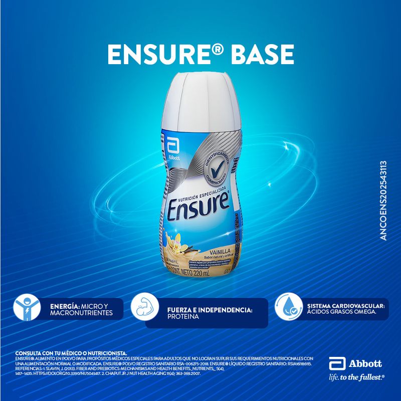 Descubre Ensure Vainilla Líquido Oral, tu aliado en nutrición para una vida saludable. Diseñado para adultos, este producto ofrece una experiencia deliciosa con su sabor a vainilla. Su fórmula equilibrada proporciona beneficios esenciales, siendo ideal para complementar tu dieta diaria y mantener un estilo de vida activo.