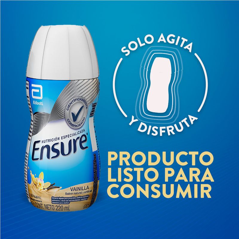 Modo de uso: Disfruta de Ensure Vainilla Líquido Oral como parte de tu rutina diaria. Lee detalladamente las instrucciones del empaque antes de usar para obtener mejores resultados. Aprovecha los beneficios de Ensure y eleva tu calidad de vida con esta opción nutritiva y deliciosa.