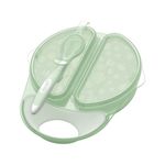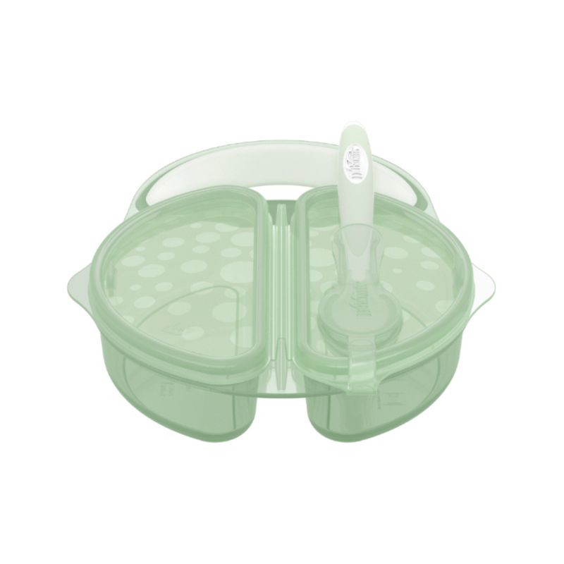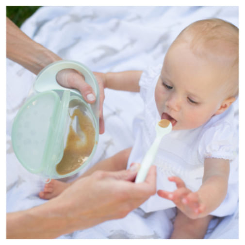 Lavar y secar todas las partes antes del primer uso. Llenar el bowl con alimentos sólidos o papillas frías o tibias. Cerrar bien la tapa para evitar derrames y usar la cuchara incluida para alimentar al bebé. Ideal para viajes o salidas. Después de cada uso, lavar con agua tibia y jabón o en lavavajillas (rejilla superior) y dejar secar completamente.