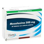 R-Mesalazina 500mg Tr Caja x 30Tabletas HxCaracterísticas y propiedades:Tratamiento alternativo de ataque agudo de colitis ulcerativaModo de uso, posología o indicacionesColitis ulcerativa y enfermedad de ChronComposición, ingredientes o materiales:Mesalazina 500 MgContraindicaciones, advertencias y Precauciones:Contraindicaciones hipersensibilidad conocida a los salicilatos o a cualquiera de los excipientes. Insuficiencia hepática o renal severas. Advertencias y precauciones antes y durante el tratamiento se deben realizar exámenes de laboratorio en sangre (recuento hemático diferencial, parámetros de la función hepática como alt o ast; creatinina sérica) y se debe determinar el estado urinario (tiras reactivas), a criterio del médico tratante. Como guía, se recomienda que se realicen exámenes de seguimiento 14 días después del inicio del tratamiento, después otros dos a tres exámenes en intervalos de 4 semanas. Si los resultados son normales, deben realizarse exámenes de seguimiento cada tres meses. Si se producen síntomas adicionales, estos exámenes de seguimiento deben realizarse inmediatamente. Se recomienda precaución en pacientes con insuficiencia hepática. Mesalazina 500 mg tabletas no debe utilizarse en pacientes con insuficiencia renal. Si la función renal se deteriora durante el tratamiento, debe considerarse la toxicidad renal inducida por mesalazina. Los pacientes con enfermedad pulmonar, en particular asma, deben ser monitoreados cuidadosamente durante el tratamiento con mesalazina 500 mg tabletas. Los pacientes con antecedentes de reacciones adversas a las preparaciones que contienen sulfasalazina, deben ser sometidos a una estricta vigilancia médica cuando inicien el tratamiento con mesalazina 500 mg tabletas. En caso de que mesalazina 500 mg tabletas provoque reacciones de intolerancia aguda, como calambres abdominales, dolor abdominal agudo, fiebre, cefalea severa y sarpullido, debe interrumpirse inmediatamente el tratamiento. Nota: en casos raros, en pacientes que han sido sometidos a resección intestinal/cirugía intestinal en la región ileocecal con eliminación de la válvula ileocecal, se ha observado que mesalazina 500 mg tabletas fue excretado no disuelto en las heces, debido al paso excesivamente rápido por el intestino. Una tableta de mesalazina 500 mg contiene 2,1 mmol (49 mg) de sodio. Esto debe tenerse en cuenta en pacientes con una dieta controlada de sodio (baja en sodio/baja en sal). Se han notificado casos de nefrolitiasis con el uso de mesalazina, lo que incluye la aparición de 3 de 10 cálculos con un contenido de mesalazina del 100 %. Se recomienda garantizar una ingesta suficiente de líquidos durante el tratamiento. Reacciones adversas cutáneas graves se han observado reacciones adversas cutáneas graves, como síndrome de stevens-johnson (ssj) y necrólisis epidérmica tóxica (net) con el tratamiento de mesalazina, reacción a drogas con eosinofilia y síntomas sistémicos (dress) y exantema pustuloso agudo generalizado (agep). La administración de mesalazina debe suspenderse ante los primeros signos o síntomas de reacciones cutáneas graves, como exantema cutáneo, lesiones mucosas o cualquier otro signo de hipersensibilidad. Fertilidad, embarazo y lactancia embarazo: no se dispone de datos adecuados sobre el uso de mesalazina en mujeres embarazadas. Sin embargo, los datos sobre un número limitado de embarazos expuestos al medicamento no indican efectos adversos de la mesalazina en el embarazo o en la salud del feto/recién nacido. Actualmente no existen otros datos epidemiológicos relevantes disponibles. Se ha reportado un caso de insuficiencia renal en un neonato después del uso prolongado de una dosis alta de mesalazina (2-4 g/día, vía oral) durante el embarazo. Los estudios en animales sobre la administración oral de mesalazina no indican efectos perjudiciales directos o indirectos sobre el embarazo, el desarrollo embrionario/fetal, el parto o desarrollo postnatal. Mesalazina 500 mg tabletas únicamente debe utilizarse durante el embarazo si los beneficios potenciales superan los posibles riesgos. Lactancia: el ácido n-acetil-5-aminosalicílico y en menor grado la mesalazina se eliminan en la leche materna. Actualmente sólo existe experiencia limitada durante la lactancia en mujeres. No se pueden excluir reacciones de hipersensibilidad, como diarrea en el lactante. Por lo tanto, mesalazina únicamente debe utilizarse durante la lactancia si los beneficios potenciales superan los posibles riesgos. Si el lactante desarrolla diarrea, debe interrumpirse la lactancia. Efectos sobre la capacidad de conducir y operar máquinas no se han observado efectos sobre la capacidad de conducir u operar máquinas.Marca comercial del producto:MesalazinaMedidas:6.5 x 8.9 x 3.8 cm