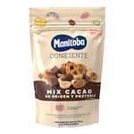 El Mix Cacao de Origen y Pretzels Manitoba Consciente (130g) combina maní, cacao al 47%, pretzels y almendras. Es bajo en sodio, sin grasas trans, y contiene proteína y fibra, ideal para disfrutar como un snack saludable.
