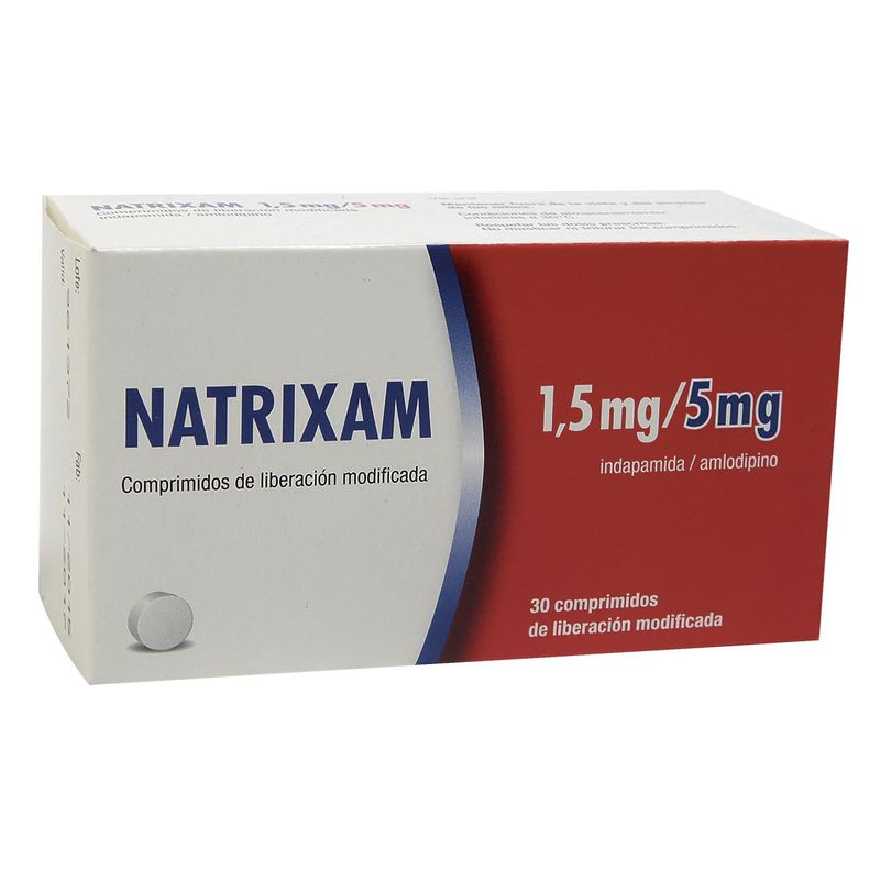 NATRIXAM 1.5MG/5MG TLP CJX30 SEC NATRIXAM 1.5MG/5MG TLP CJX30 SEC Proveedor: LABORATORIOS SERVIER DE COLOMBIA SA | Registro Sanitario: 2015M-0016471 | Presentación: 5 TAB NATRIXAM, suministrado por LABORATORIOS SERVIER DE COLOMBIA SA, es una combinación de AMLODIPINO e INDAPAMIDA, pertenecientes a los antagonistas del calcio y antihipertensivos. Este medicamento está diseñado para el tratamiento de la hipertensión, ofreciendo beneficios significativos para la salud cardiovascular. Beneficios y Uso NATRIXAM ayuda a controlar la presión arterial, reduciendo el riesgo de enfermedades cardiovasculares. Su combinación de principios activos proporciona un tratamiento efectivo contra la hipertensión. Posología o Dosificación Lea detalladamente el inserto o la información de la caja para conocer la posología específica de NATRIXAM. Siga las indicaciones para garantizar un uso seguro y efectivo del medicamento. Contraindicaciones Avoid NATRIXAM si es hipersensible a alguno de sus componentes. Consulte la información de la caja para conocer las contraindicaciones adicionales antes de su uso. Precauciones y Advertencias Manténgase fuera del alcance de los niños. Administre con precaución y bajo vigilancia médica. Consulte a un profesional de la salud para un uso adecuado y seguro de NATRIXAM.