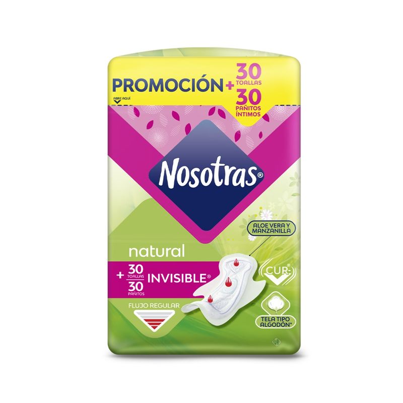 Oferta Toalla Higiénica Nosotras Natural Invisible x 30 + 30 Pañitos