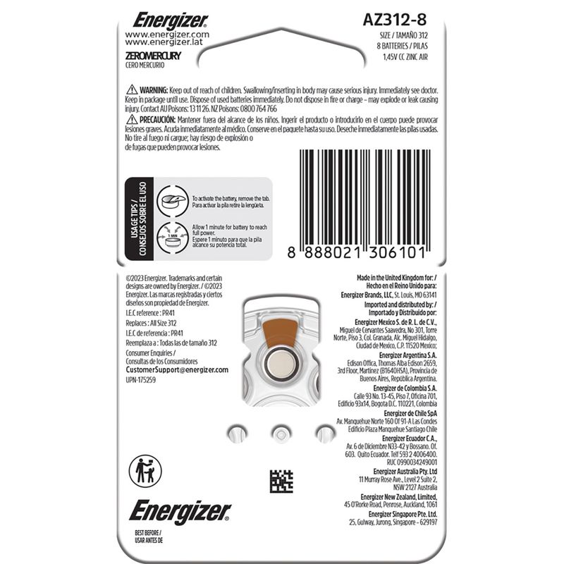 PILA AUDITIVA ENERGIZER AZ312DPA-8 TARJ X 8