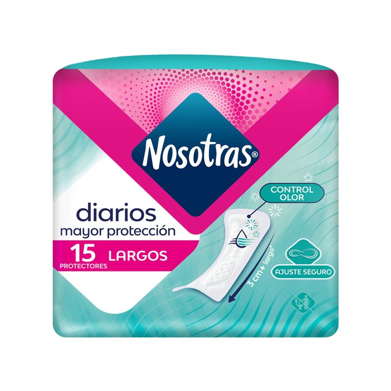 Para qué sirve: Estos protectores diarios están diseñados pensando en tu comodidad y protección. Son ideales para usar a diario y mantenerte fresca y seca durante todo el día. Los Prot Nosotras Diarios Largos brindan una capa adicional de protección, ayudándote a sentirte limpia y segura en cualquier situación.