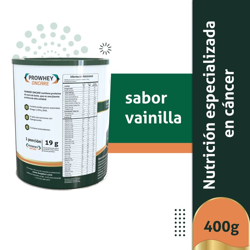 Prowhey Polvo Oncare Vainilla de la reconocida marca comercial Prowhey es tu elección inteligente para promover un estilo de vida saludable. Con un Registro Sanitario RSA-0007680-2019 y un generoso contenido de 400 G, este producto está diseñado para brindarte beneficios nutricionales y satisfacer tus necesidades diarias.
