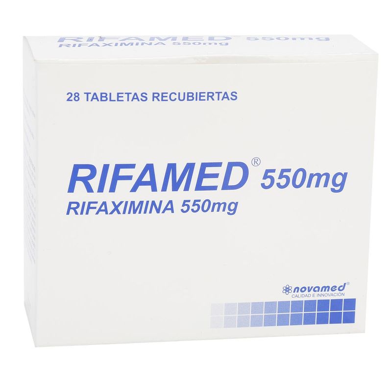 RIFAMED 550MG TNR CJX28TAB NV RIFAMED 550MG TNR CJX28TAB NV RIFAMED 550MG TNR CJX28TAB NV, suministrado por NOVAMED SA, es un antidiarreico con Registro Sanitario 2018M-0018581. Contiene RIFAXIMINA como sustancia base y principio activo, presentado en un envase con 7 tabletas. Clasificado en la categoría jerárquica de ANTIDIARREICOS, SUBST DE ELECT ORA Y ANT, TRACTO ALIMENTARIO Y METABOLISMO, ANTIDIARREICOS, ANTI-INFECCIOSOS INTESTINALES. Beneficios: RIFAMED ayuda a controlar la diarrea y prevenir infecciones intestinales. Uso: siga las indicaciones médicas para tratar eficazmente la diarrea. EAN: 7703546907132. Posología o Dosificación Lea detalladamente el inserto o la información de la caja para obtener la posología exacta de RIFAMED. Administre según las indicaciones médicas para un tratamiento efectivo contra la diarrea. Contraindicaciones Avoid el uso de RIFAMED en caso de hipersensibilidad a alguno de sus componentes. Consulte la información de la caja para conocer posibles contraindicaciones. Precauciones y Advertencias Mantenga RIFAMED fuera del alcance de los niños. Administre con precaución y bajo supervisión médica para garantizar un uso seguro y efectivo, especialmente en pacientes pediátricos y geriátricos.