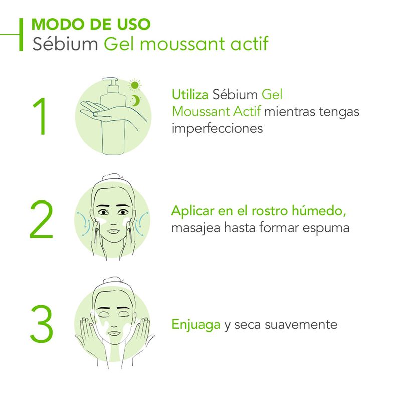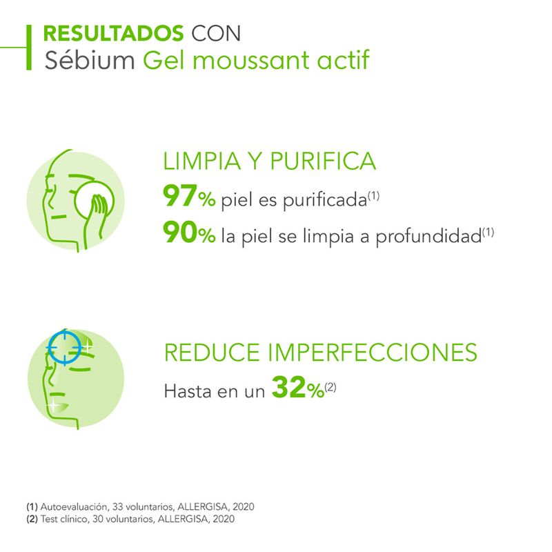 El Gel Moussant Actif Sebium es un limpiador facial de uso diario que se encarga de purificar la piel de impurezas y células muertas, dejando una piel limpia y fresca. Además, se encarga de controlar la producción de sebo, lo que ayuda a prevenir la aparición de imperfecciones. Este producto está especialmente formulado para pieles mixtas, grasas y acneicas.