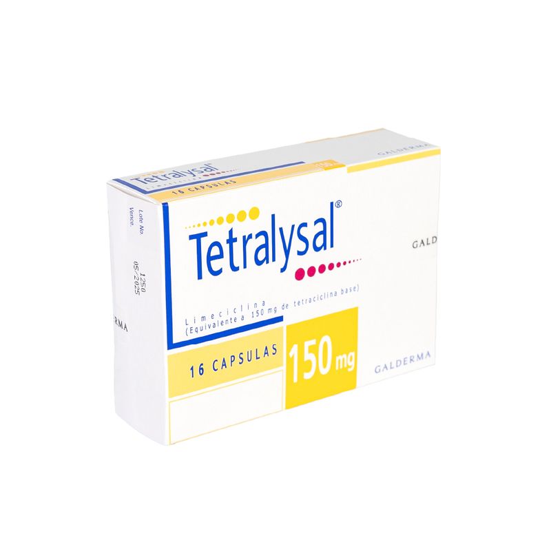 Tetralysal 16 caps 150 mgCaracterísticas: TETRALYSAL® 150 mg Cápsulas es un antibiótico de uso sistémico que contiene limeciclina, un derivado de la tetraciclina. Está indicado para tratar infecciones causadas por organismos sensibles, incluyendo acné. Su mecanismo de acción se basa en la inhibición de la síntesis de proteínas bacterianas, ejerciendo un efecto bacteriostático.Propiedades: TETRALYSAL® 150 mg Cápsulas es un antibiótico de la familia de las tetraciclinas que actúa inhibiendo la síntesis de proteínas bacterianas al unirse a la subunidad 30S del ribosoma, impidiendo la agregación de aminoácidos en la cadena peptídica.Se utiliza en el tratamiento del acné vulgar. Su efecto en el acné se atribuye a la inhibición del Propionibacterium acnes y la reducción de ácidos grasos libres en el sebo, disminuyendo la inflamación y formación de lesiones cutáneas.Beneficios: 1. Su uso es recomendado por las guías internacionales, al ser la tetraciclina más segura y tolerada.³?4